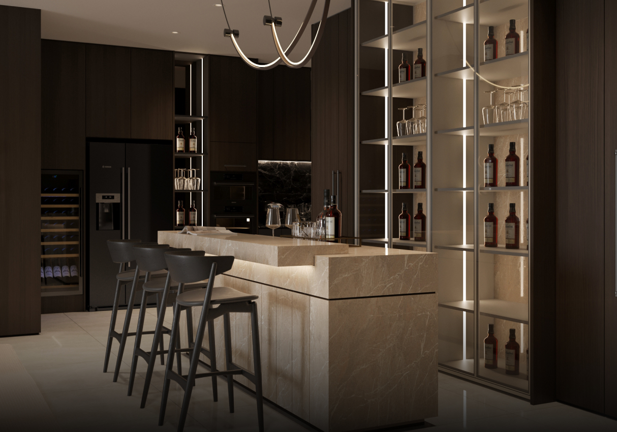 and refined simplicity. Every element — from the gentle curves of furniture to the soft interplay of natural light and neutral tones —