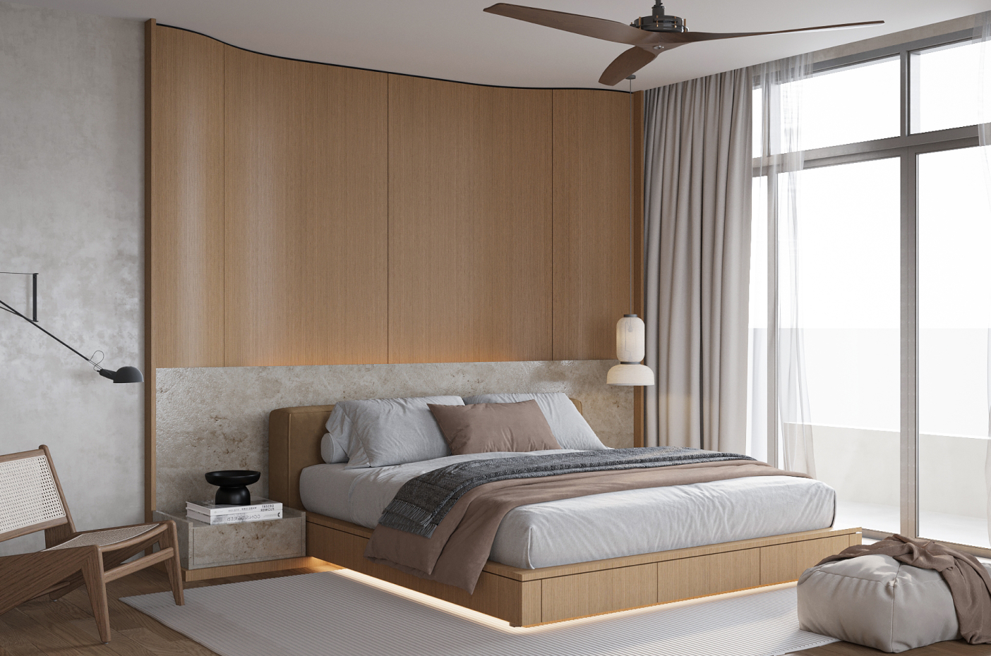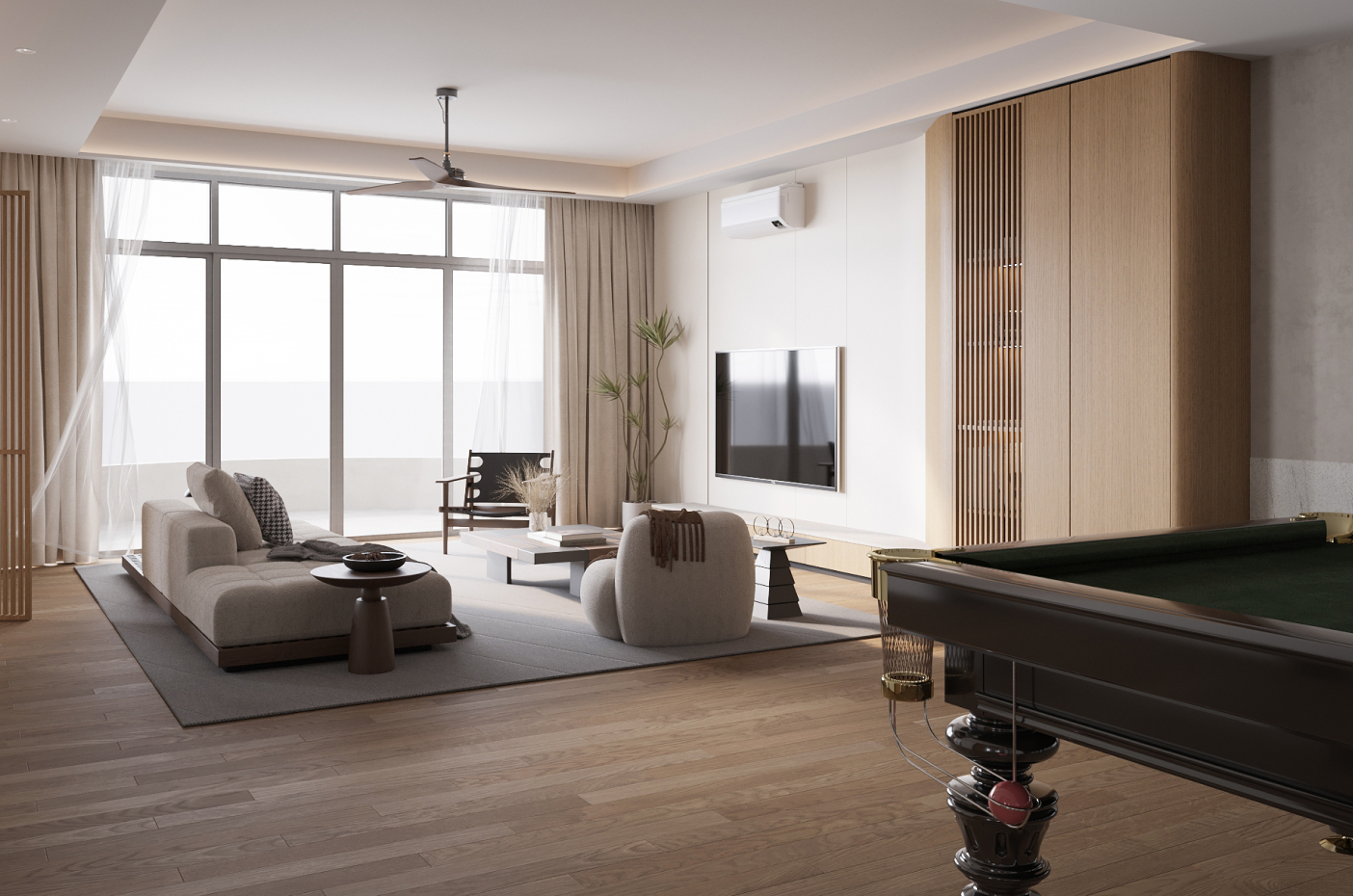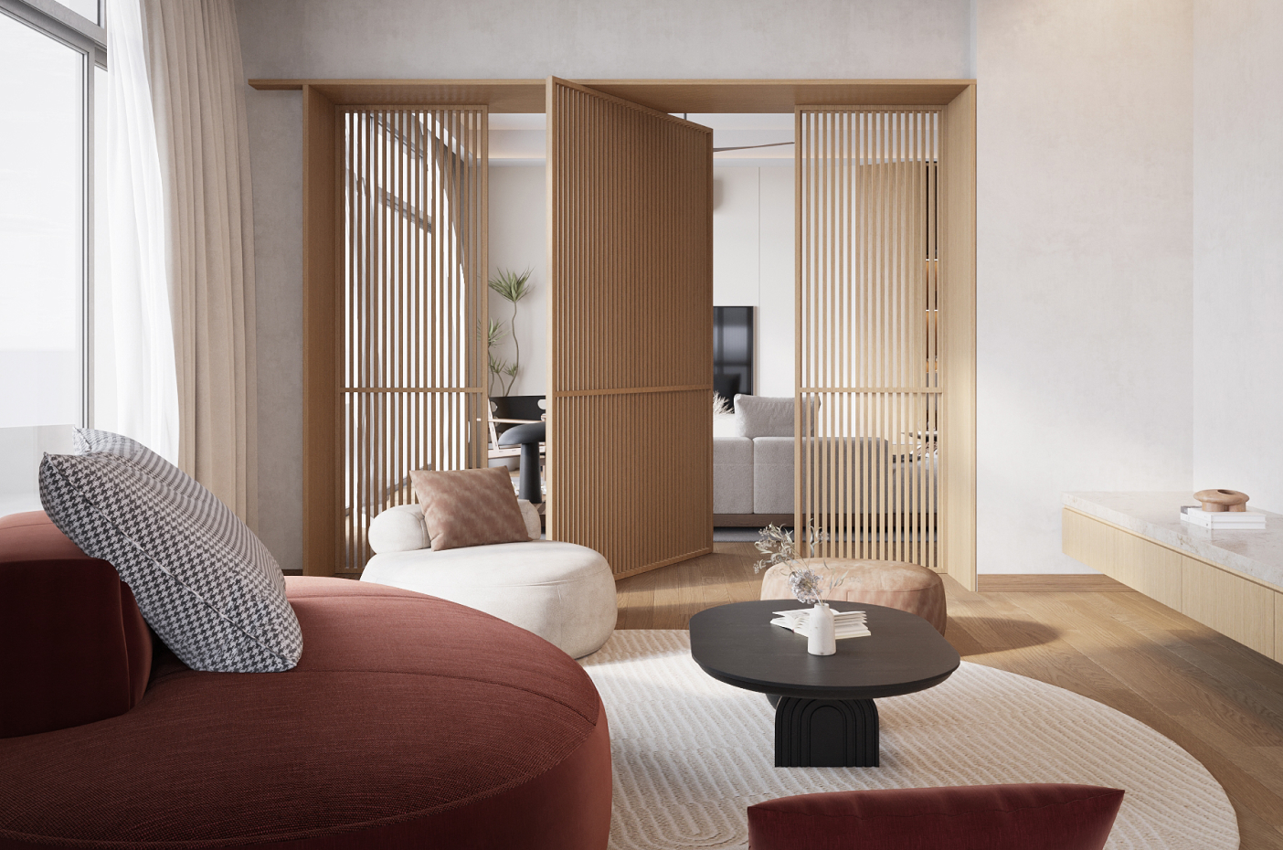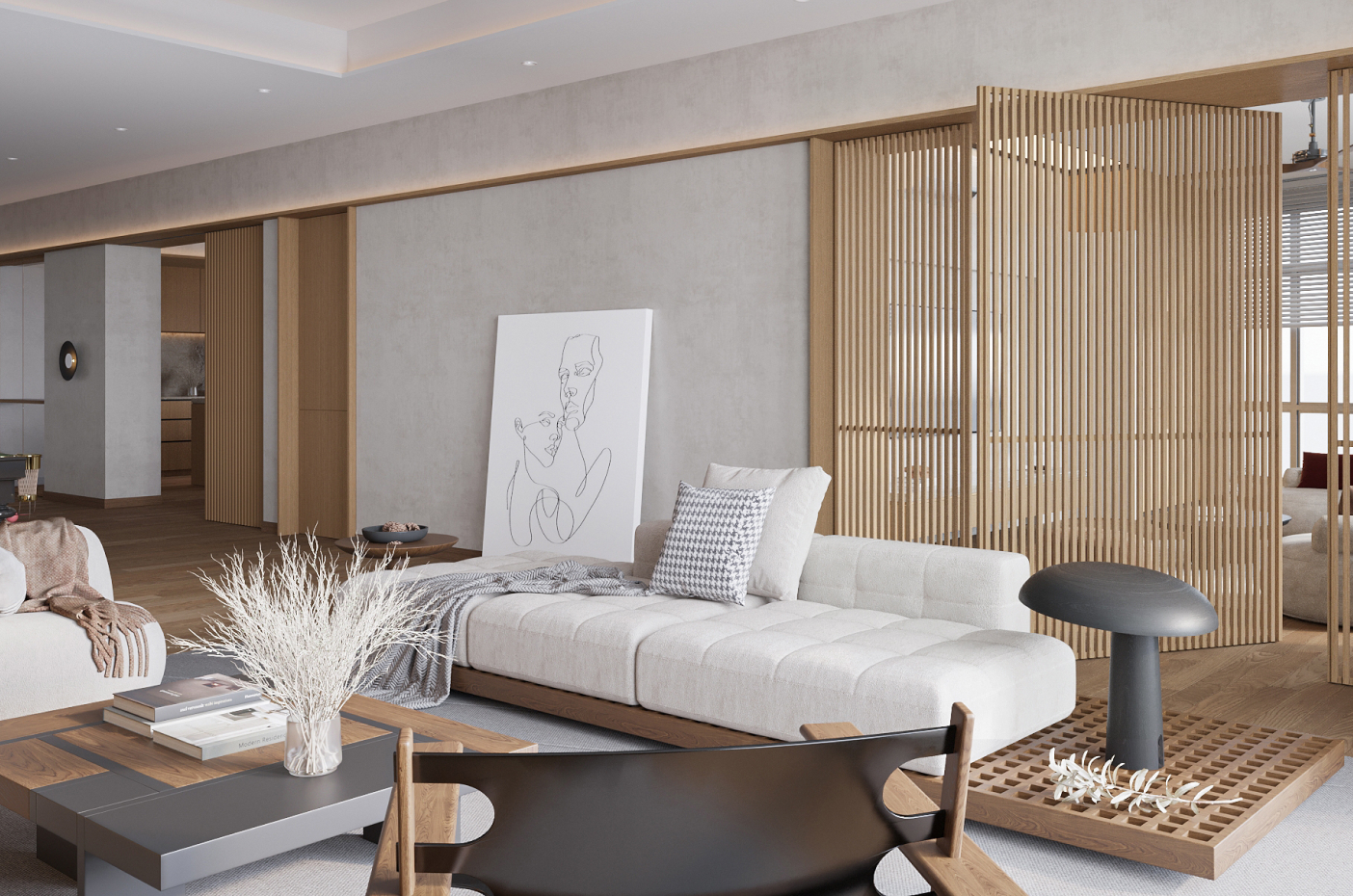 A harmonious blend of Japanese minimalism and Scandinavian warmth, this Japandi Classic interior embodies timeless balance