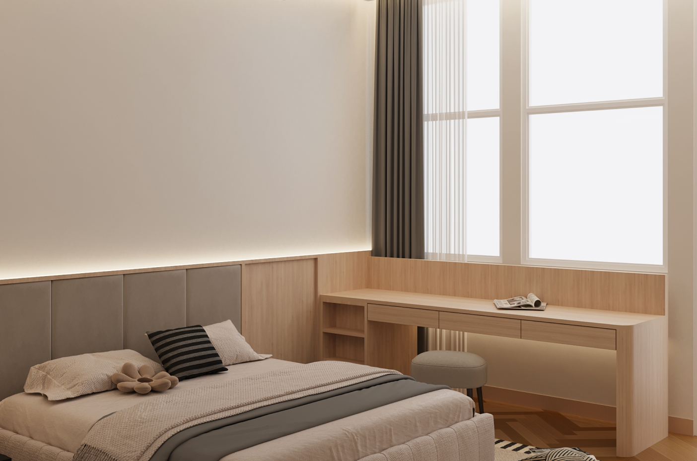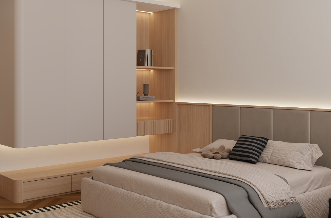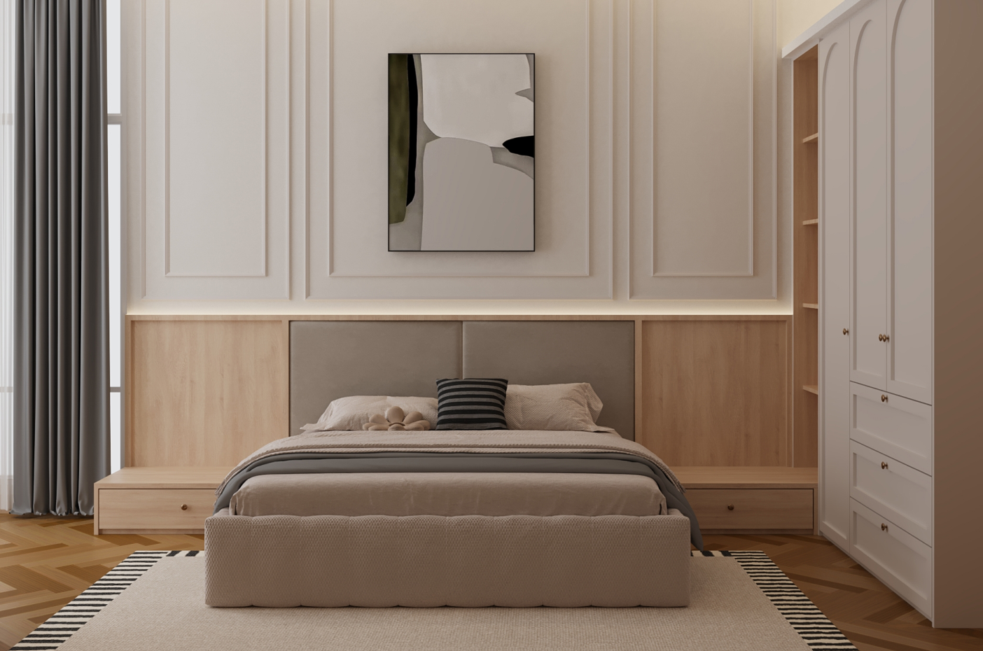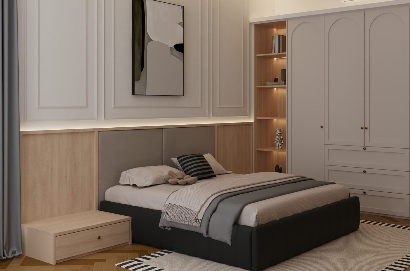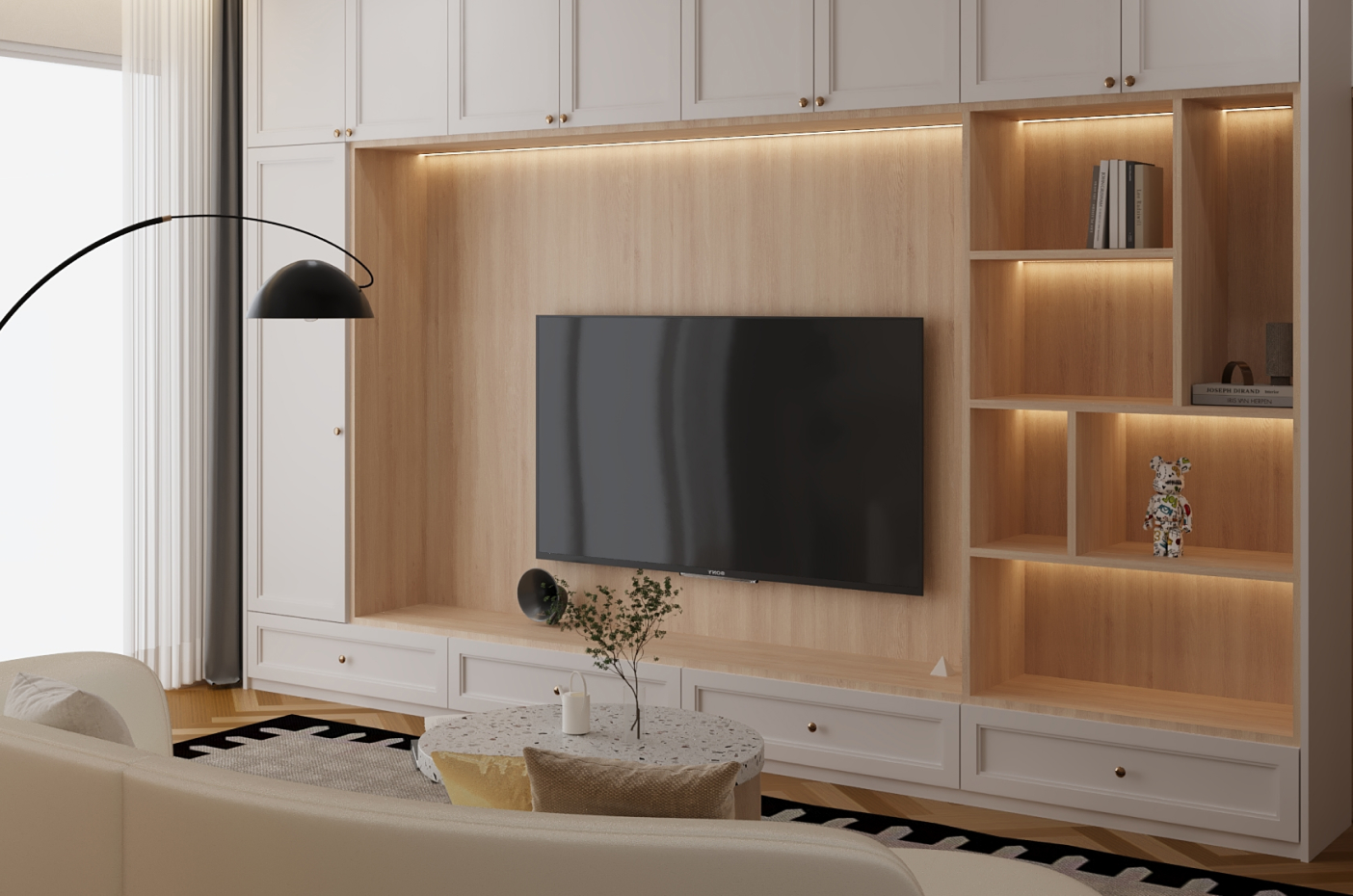 and wood bring warmth and sophistication. Every element is thoughtfully composed to achieve harmony